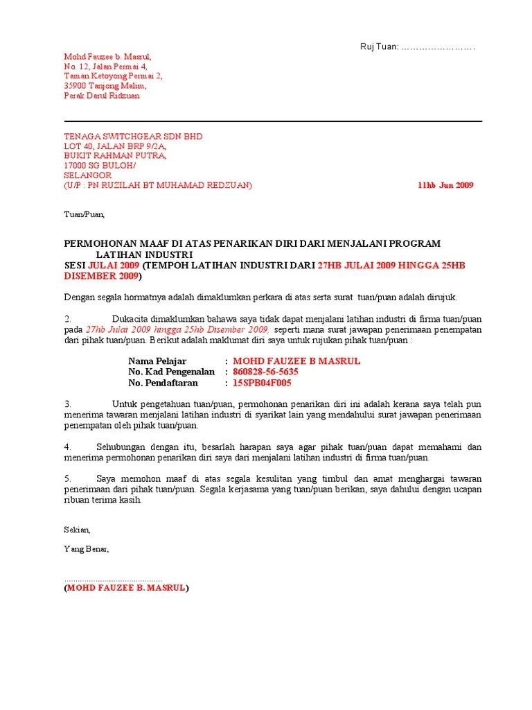 Contoh surat rasmi memohon maaf atas kelewatan. Mohon maaf surat rasmi memohon maaf atas kesalahan masjid darul. Surat mohon maaf menolak tawaran latihan industri via www.slideshare.net. 10 contoh surat permohonan maaf pribadi perusahaan lezgetreal. Download contoh surat rasmi permohonan maaf contoh tiga.